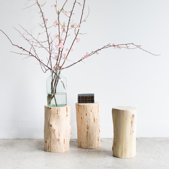 Each of these chic and rustic side tables is hand made from a single block of wood. It's the perfect blend of form and function.