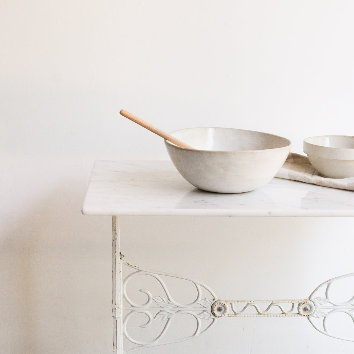 - Cast iron base with white painted finish.